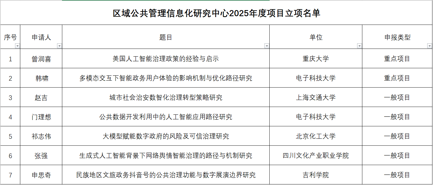 区域公共管理信息化研究中心2025年度项目立项名单